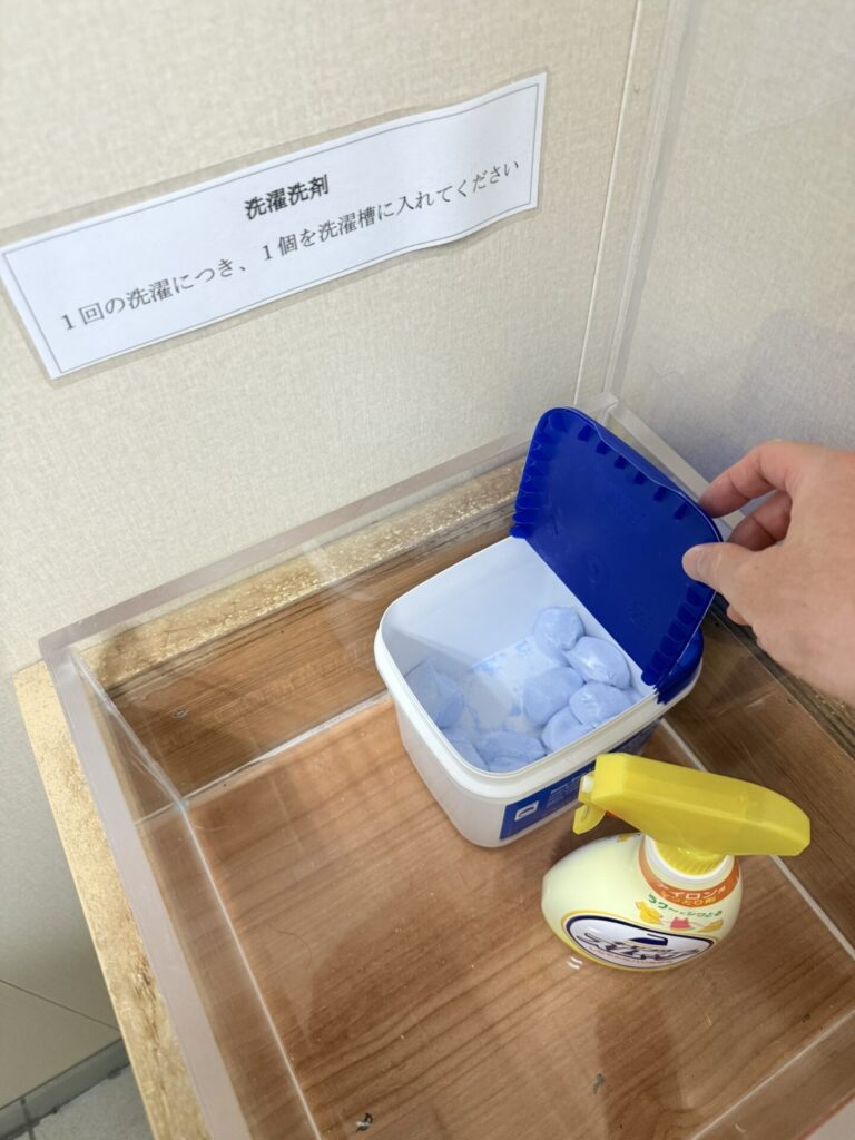 洗剤も常備されていたので自宅から持っていっていただく必要もありませんよ。