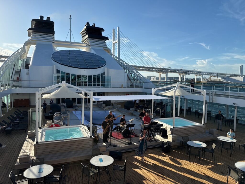 デッキ8階にはメインプールがあり、海風を感じながらのんびり泳ぐ時間は至福そのもの。