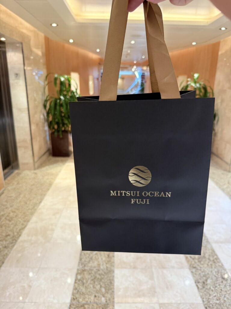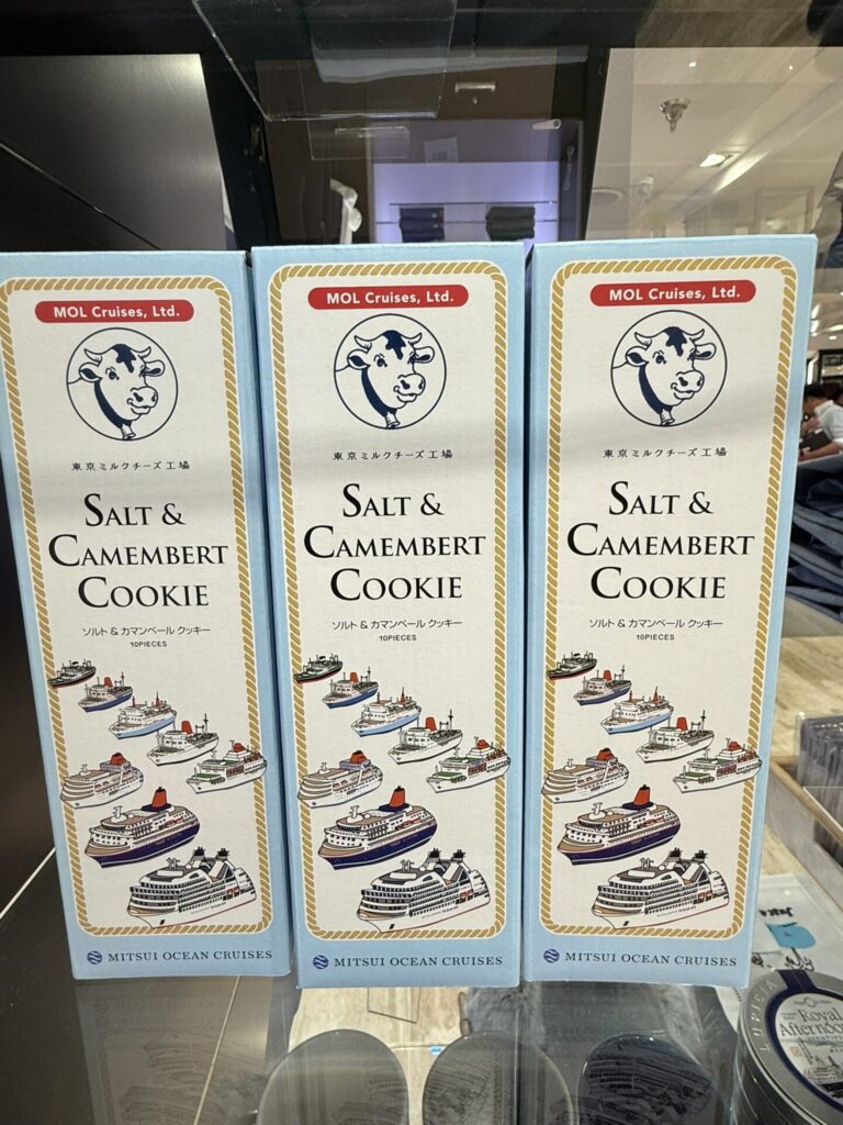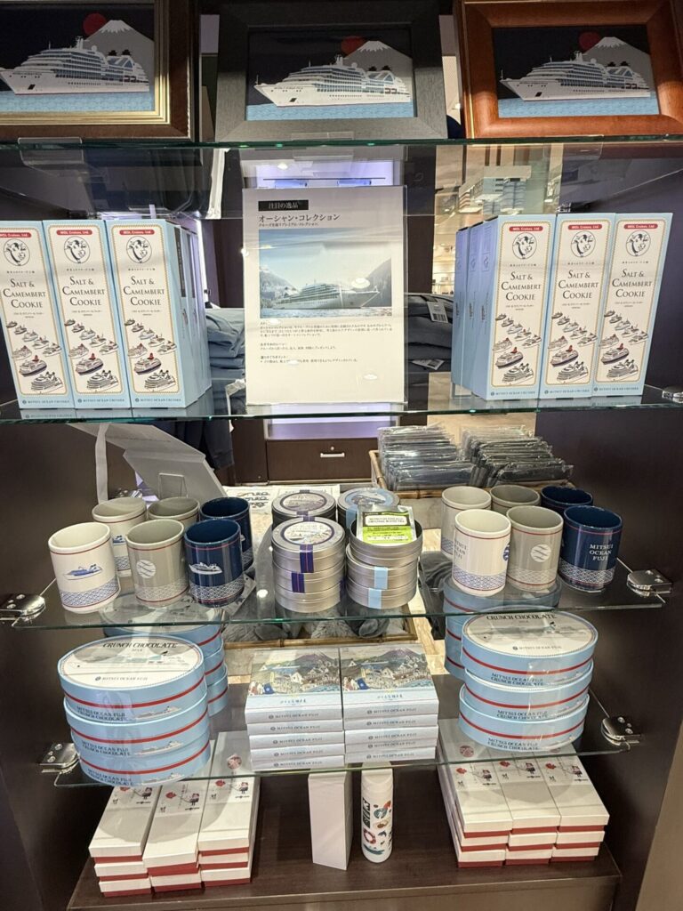 三井オーシャンフジが就航したてのときは、お土産が無いような口コミも多かったのですが、2025年7月に乗船したときはオリジナルのクッキーやTシャツ、船内限定グッズなど、思わず欲しくなるアイテムが揃っていました。