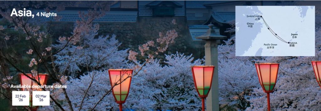 2027年頭には、東京〜上海へのポジショニングクルーズも設定されています。