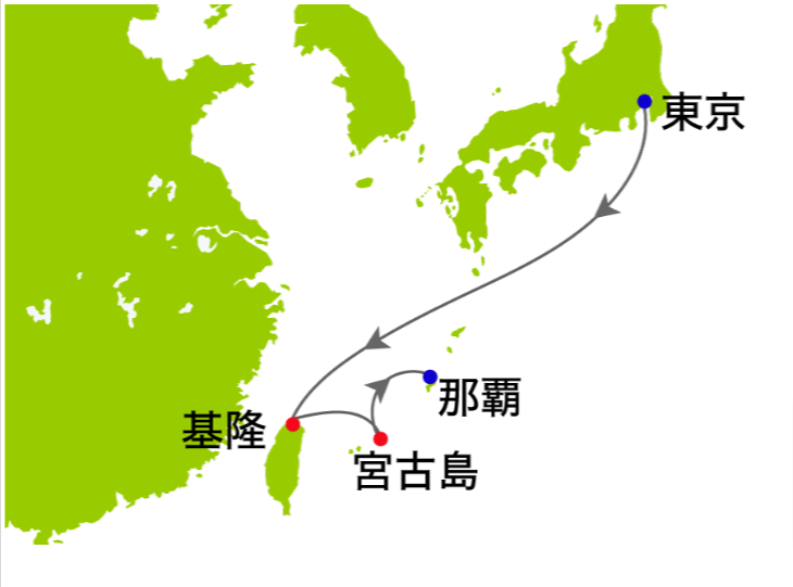 外国船はカボタージュ規則により、必ず海外の港に寄港しなければならないため、最低でも3泊以上になります。