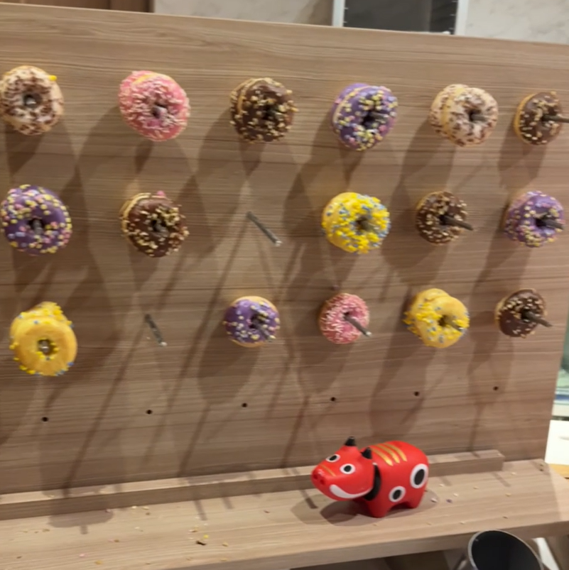 - スイーツも種類が多く、子どもから大人まで楽しめる内容。ドーナツのラックは見ても楽しい