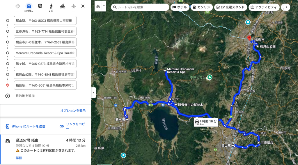 春の福島・裏磐梯の桜&観光モデルルート(関東からの一例)